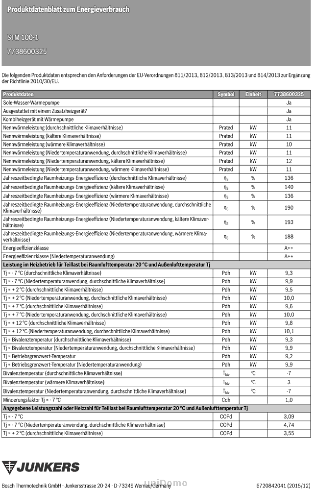 Junkers Erdwärmepumpe SUPRAECO STM 100-1 Modulgerät 10,4 kW