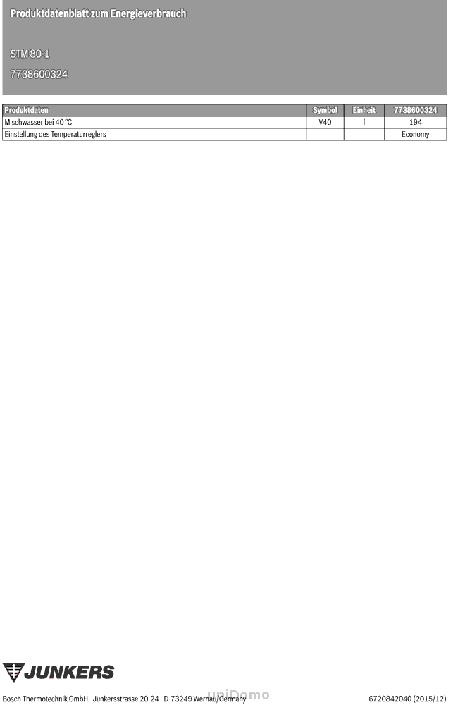 | Inhalt Heizwassermantelspeich.l 40 | |