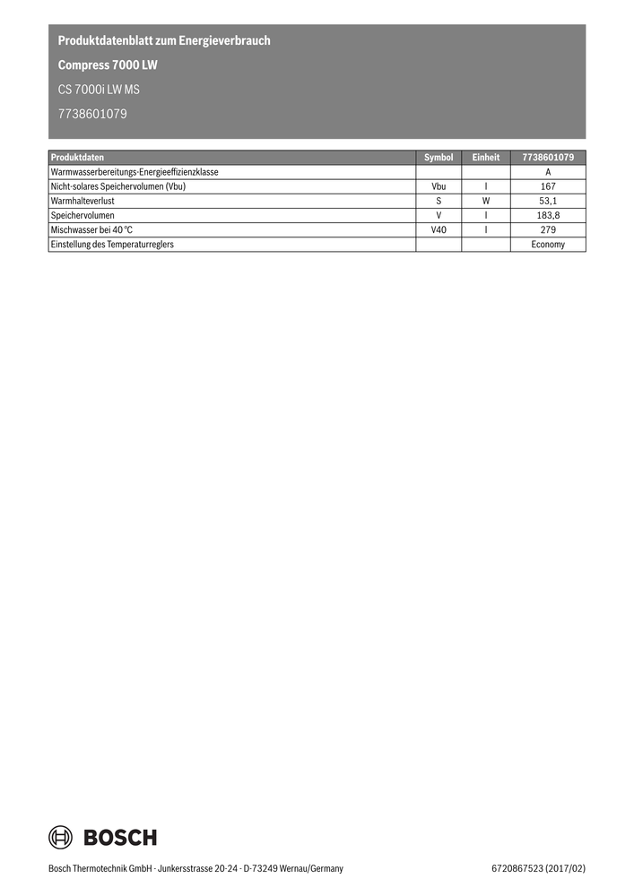 Jahreszeitbedingte Raumheizungs-Energieeffizienz bei durchschnittlichen Klimaverhältnissen (55 Grad C Vorlauftemperatur): 158 %