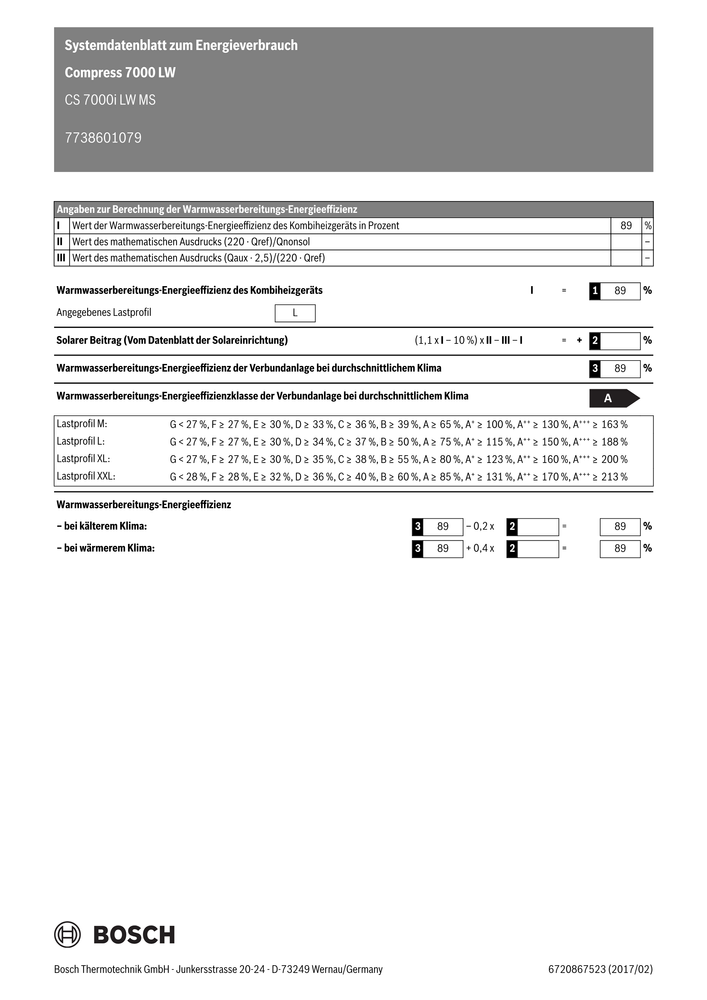 Warmwasserbereitungs-Energieeffizienz bei durchschnittlichem Klima: 89 %