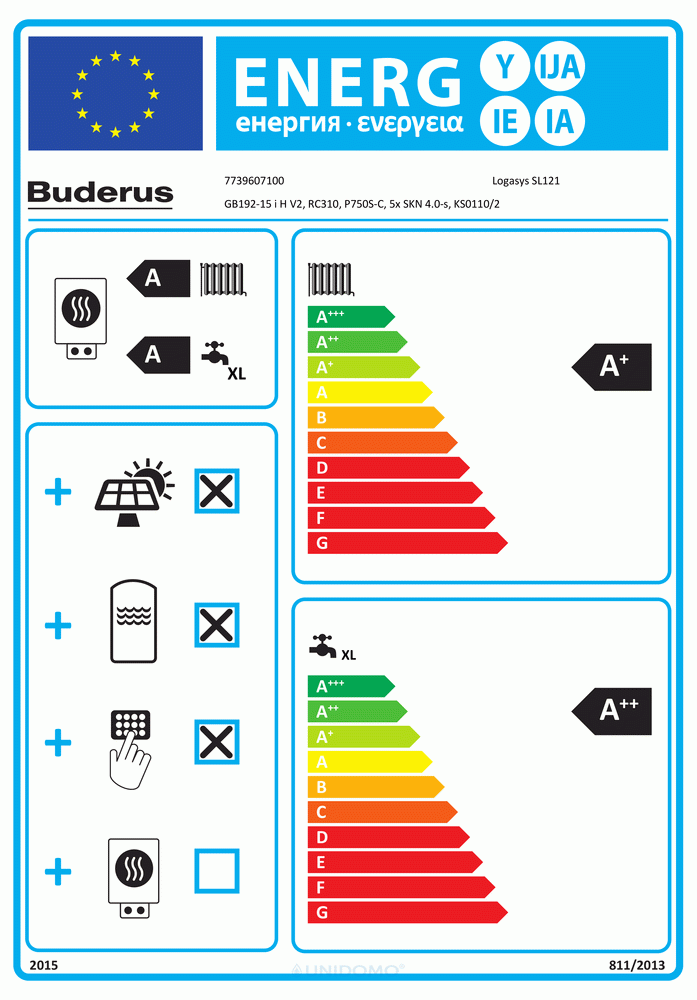 Jahreszeitbedingte Raumheizungs Energieeffizienz der Verbundanlage bei durchschnittlichen Klimaverhältnissen (Wärmepumpe) Klasse für die Warmwasserbereitungs-Energieeffizienz bei durchschnittlichem Klima: A++