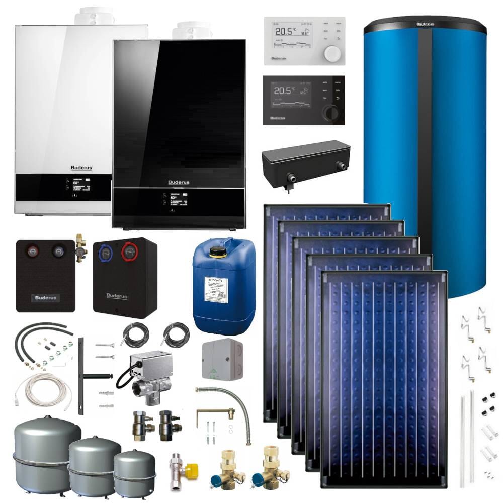 Buderus Logasys-Paket SL121 Brennwert Gastherme GB-192-15/25 i H P750S, 5 Solarkollektoren SKN4.0, RC310