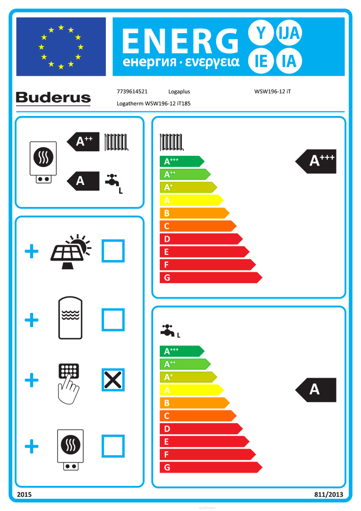 EU-Richtlinie für Energieeffizienz Klasse für jahreszeitbedingte Raumheizungs-Energieeffizienz der Verbundanlage: A+++