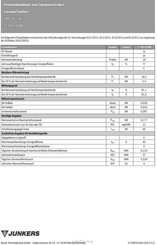 Junkers Cerastar Comfort ZWR 18-7 KE 21