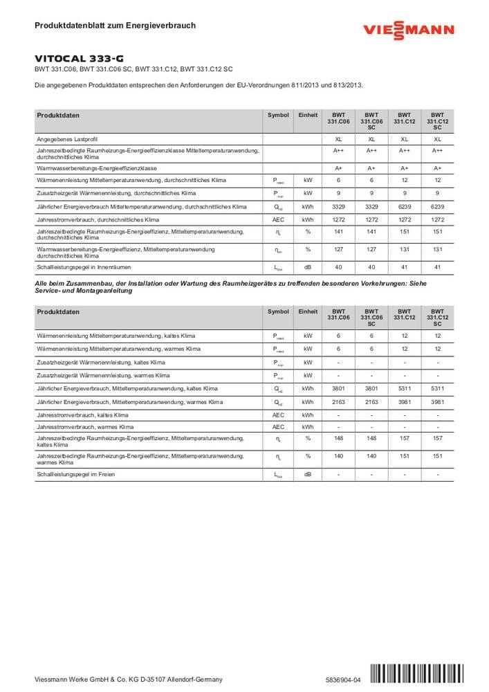 | Vitocal 333-G | BWT 331.C06 | BWT 331.C12 |